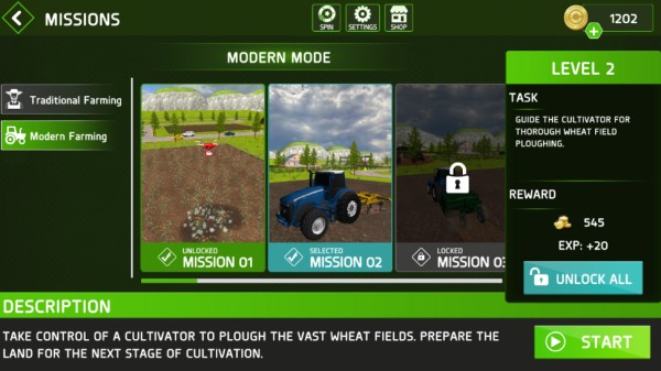 選擇農場模式時,有現代農場和傳統農場這兩種不同的模式可供挑選,并且不同模式對應著不一樣的任務關卡。