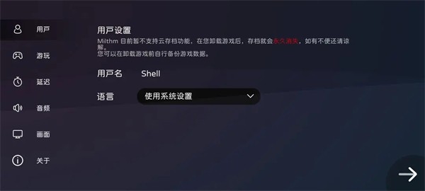 在用戶設置板塊中,玩家能夠設置自己的用戶名,還可以調整語言偏好。當前版本共提供了簡體中文、繁體中文、英文和日語這四種語言選項供玩家挑選。
