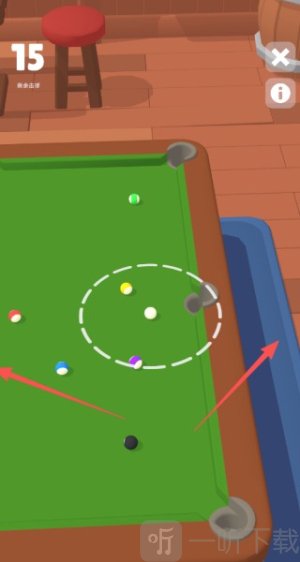 通過點擊并長按屏幕來掌控擊球的力度與方向,把球精準地打進袋里。
