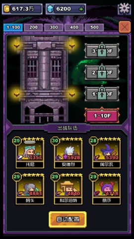 打到第十層后,開(kāi)啟自動(dòng)戰(zhàn)斗并使用加速功能,這樣就能快速獲取金幣,用于騎士的訓(xùn)練和升級(jí)。