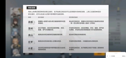 神系:角色的屬性。其實嚴格來說也不算屬性,因為這之間不存在克制關系之類的(敵人沒有屬性。),也不像原神那樣有相互反應作用,單純的就是一個角色的歸類。神系目前有五種,分別是真櫻(式神),圣樹(妖精),奧山(星使),尼羅(列王),眾星(命者)。順帶一提,這些分別對應了日本神話,印度神話,北歐的奧林匹斯山神話,埃及神話。眾星沒有對應的神話,屬于“其他”這種,聽說要出中國系了。(現在是4月30號,如果有我會在下面更新。)