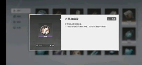 從左到右依次為:基礎貨幣獲取,角色經驗獲取,角色技能點獲取,權鑰經驗材料獲取,權鑰和刻印突破材料獲取,角色突破材料獲取。