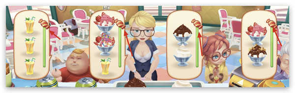 細心地玩家可能已經(jīng)發(fā)現(xiàn)了,在文中的第一張圖中,已經(jīng)把糖給了顧客,所以,才能放肆的進行\(zhòng)\\'連連上菜\\\'!