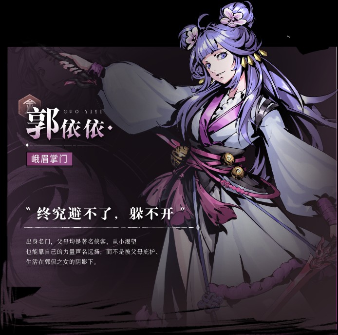 出身名門,父母均是著名俠客,從小渴望也能靠自己的力量聲名運揚,而不是被父母庇護生活在郭侃之女的陰影下。