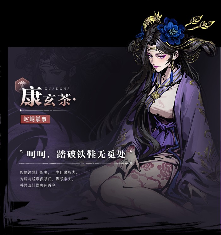崆峒派掌門新妻,一生仰慕權力,為嫁與崆峒派掌門,謀殺親夫,并設毒計謀害何首烏。