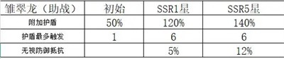 雛翠龍助戰時,在SSR之前只能有套盾作用,SSR后護盾最多觸發6次,相當于給每一個角色一個盾,還帶無視防御抵抗,增強了角色坦度。雛翠龍在SSR后,產生了一個保全體的作用,經過星辰實測,盾不是很厚,但配合現在主流的加血復活體系很強。