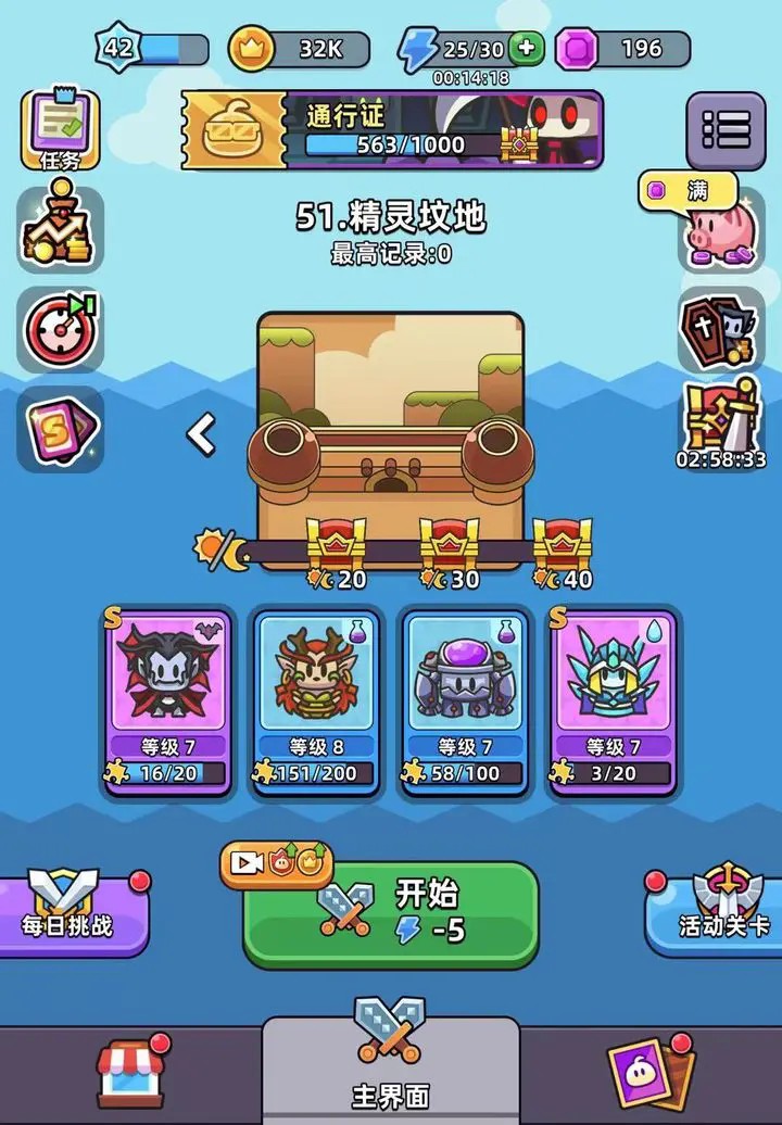 利用好每日合成+1卡日子,可以多合幾個高級和滿級英雄,20關以后感覺明顯5合寶箱出步數概率變低,可以選擇四合三合