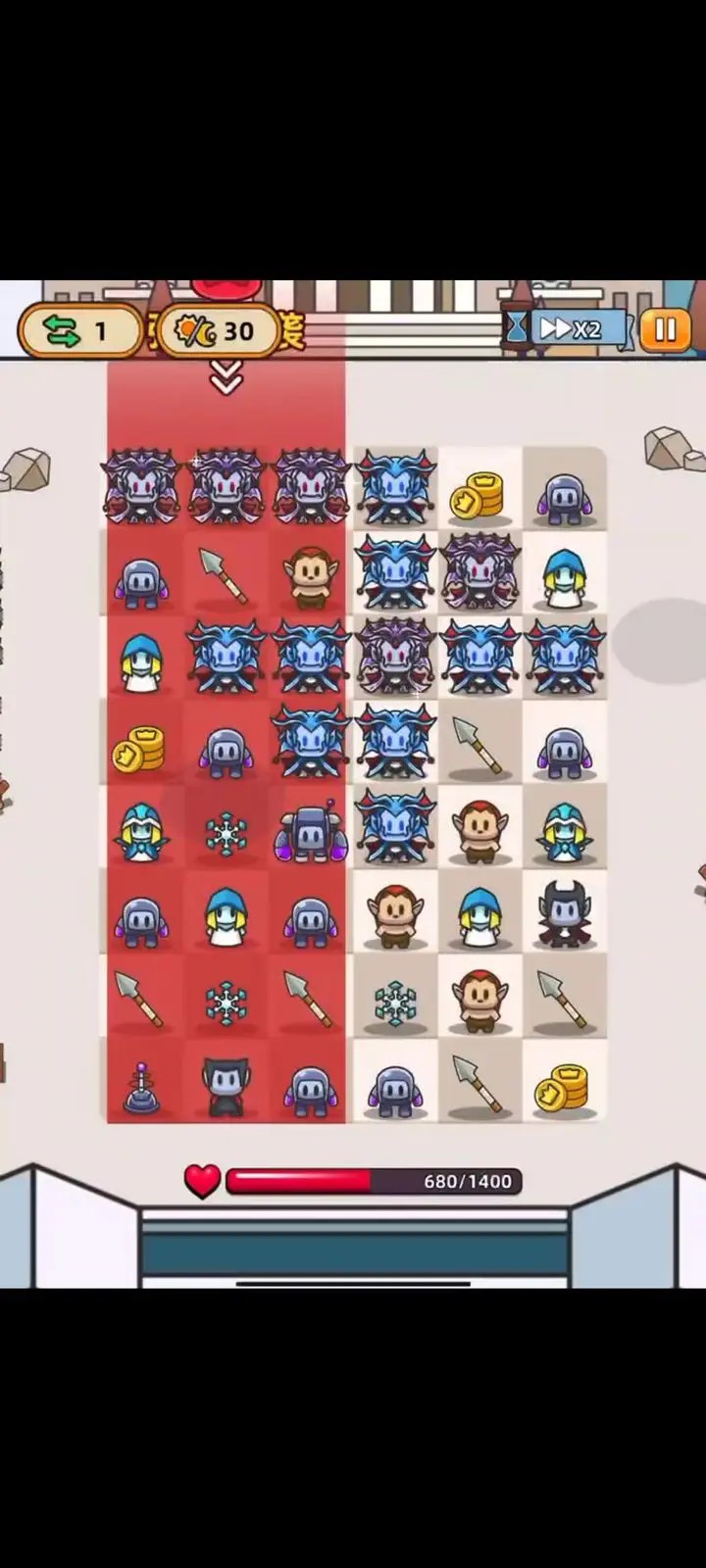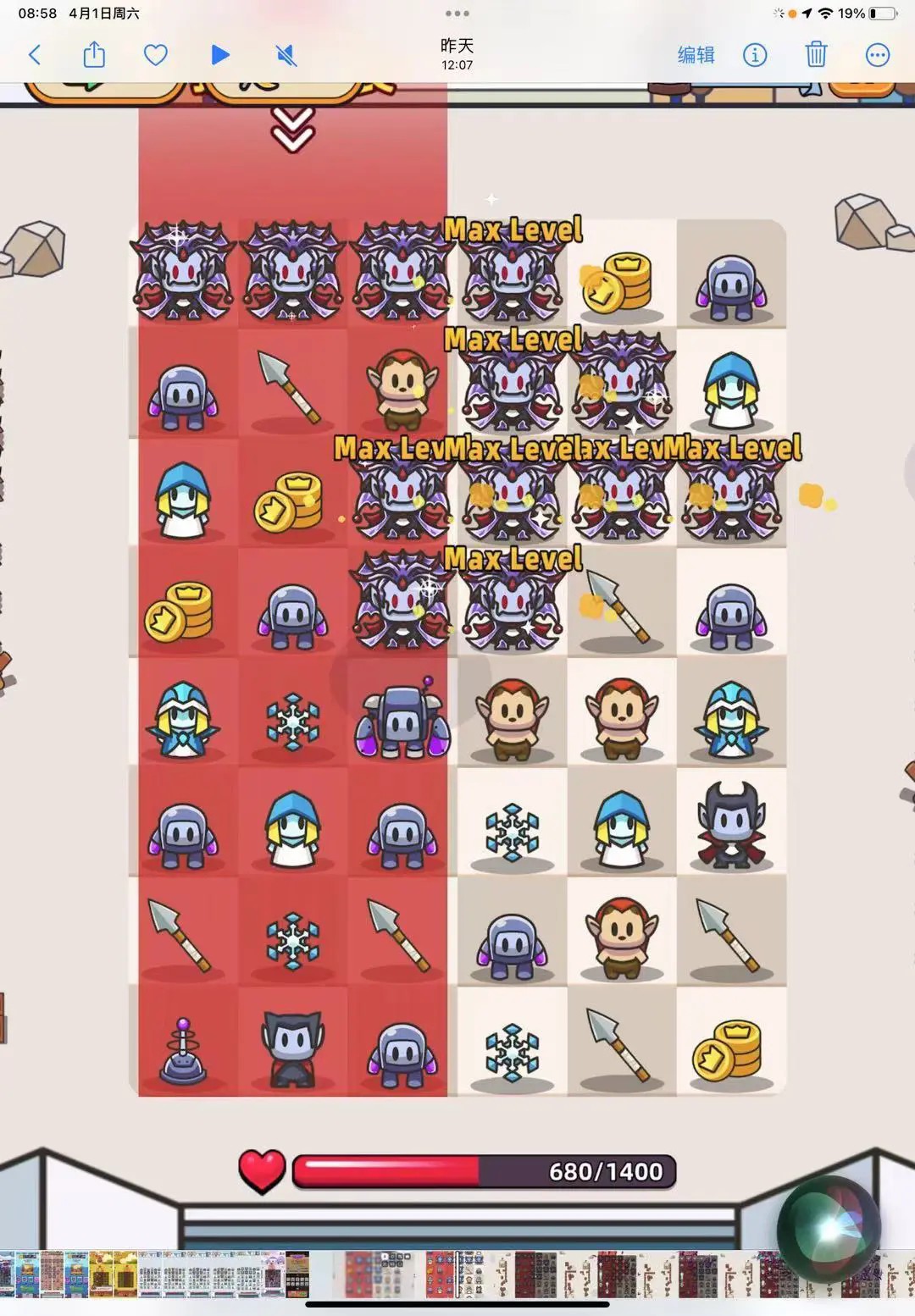 前期就是消消樂,就近五合或者三合非主力英雄,騰出格子,再刷出五合多升中間一級后再合成主力,可以先合上邊格子,容易多爆步數,且留出下邊空間方便操作。