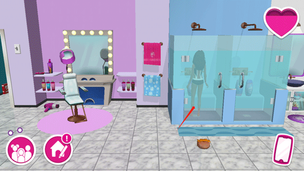 需要摘面膜時,將人物拖動至淋浴間洗澡