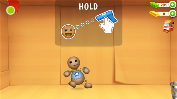 點(diǎn)擊屏幕,就會(huì)出現(xiàn)手槍,我們選擇瞄準(zhǔn)木偶人,開啟射擊即可。