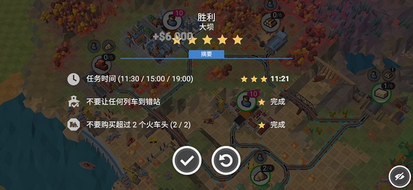 每個關卡都有特定的任務目標,例如在規定的時間內將指定數量的貨物送達目的地,或者在規定的步數內完成鐵路布置等,玩家需要根據任務目標來制定策略和計劃。