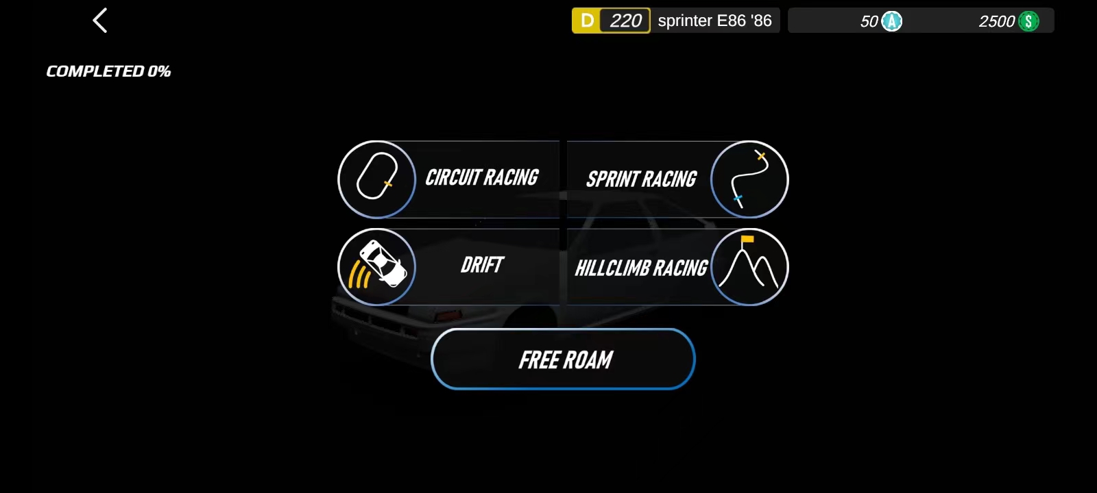 登錄完成后,可看到包括賽車、短跑、漂移和爬坡比賽等游戲模式,玩家可自行選擇體驗,這里以賽車模式為例,