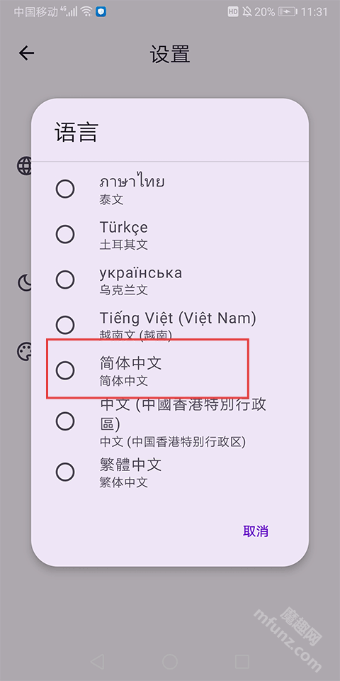 進入【設置】-【語言】,選【簡體中文】切換語言。