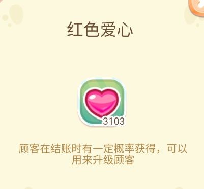 結(jié)賬時才有一定概率獲得。所以想要獲得多的愛心,一定要讓【甜品柜】上的甜品保持有貨。否則沒有貨物,【顧客】是不會進店的。