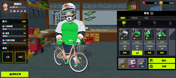 在游戲里贏取大獎,除了要掌握技巧,對服飾、自行車和道具進行優化升級也是獲勝的關鍵。