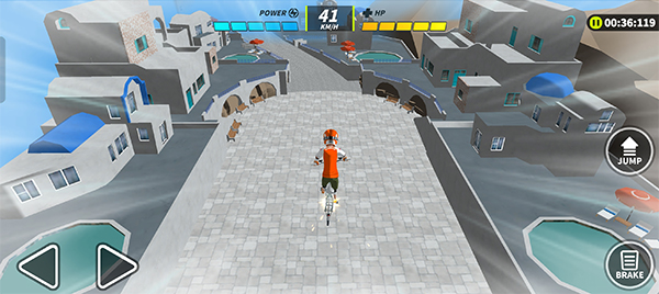 這款游戲的操作玩法相對簡單,玩家只需掌握左側的方向控制鍵,以及右側的加速、剎車和跳躍鍵即可。游戲過程中要注意避開障礙和其他選手,避免因碰撞導致減速;另外,在踏板跳躍時多次點擊方向鍵,能更有效地提升速度。最終,最先沖過終點線的選手將獲得勝利。