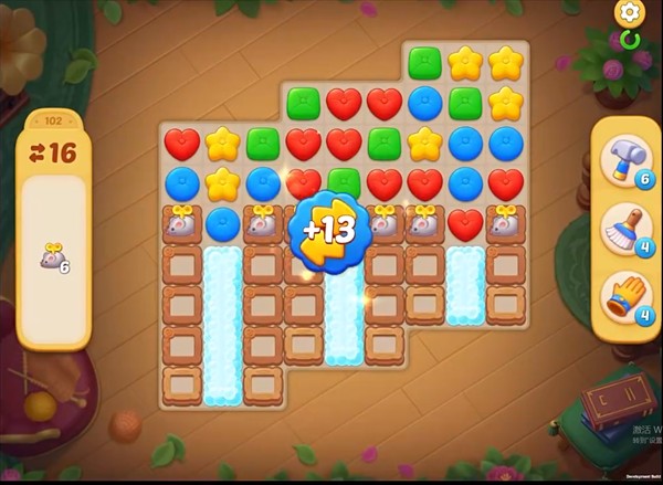 滑動屏幕就能啟動移動,玩法和基礎三消類似,把方塊移到符合條件的位置就能消除,通關可以獲取金幣、星星和道具。