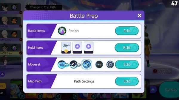 和傳統(tǒng)MOBA游戲的玩法相近,采用5v5的對(duì)戰(zhàn)模式,比賽時(shí)長(zhǎng)是固定的,雙方需要在10分鐘內(nèi)比拼獲得的分?jǐn)?shù),分?jǐn)?shù)更高的一方就能贏得勝利。玩家可以通過擊敗野區(qū)的野生寶可夢(mèng)或者對(duì)方的寶可夢(mèng)來獲取可攜帶的分?jǐn)?shù),之后把這些攜帶的分?jǐn)?shù)送到對(duì)方陣營里,就能轉(zhuǎn)化為團(tuán)隊(duì)的總得分。交付分?jǐn)?shù)以及擊敗其他寶可夢(mèng)的過程中,玩家會(huì)獲得經(jīng)驗(yàn)值,隨著經(jīng)驗(yàn)值不斷積累,自己操控的寶可夢(mèng)可以完成升級(jí)和進(jìn)化,還能學(xué)會(huì)賽前就已經(jīng)設(shè)定好的新技能。