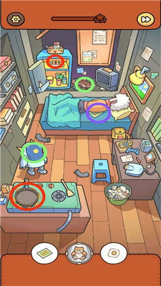 先點擊地面上那個圓圓的紅色按鈕,等蟑螂從洞口經過時,再點擊洞口就能獲取薯片了。