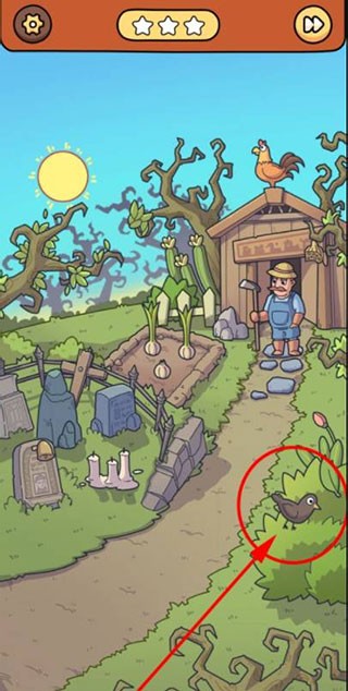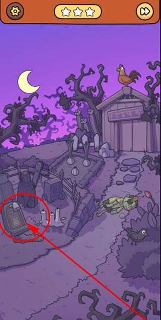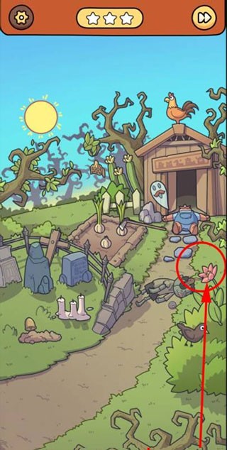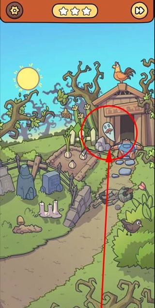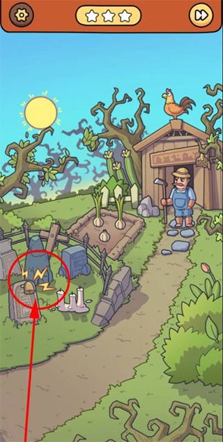 腦洞大偵探最新版本僵尸大作戰攻略1、小屋門口菜園旁有個掛著鈴鐺的墓碑,點擊墓碑上的鈴鐺會出現閃電符號,點擊符號即可將其收起。
