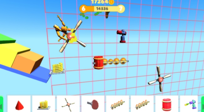 游戲提供豐富的道具組合玩法:從常規武器到科幻裝置,上百種道具可供選擇,玩家可自由疊加組合觸發連鎖反應,每一次實驗都能解鎖全新的物理現象與破壞效果。