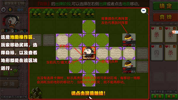 每一關都會有多名武將出場,這些武將分屬玩家陣營和電腦陣營,雙方將交替行動。玩家回合開始時,玩家可點擊任意一名己方武將執行行動;該武將行動結束后,再依次操作其他未行動的己方武將。待所有己方武將都完成行動后,點擊“結束回合”便輪到電腦陣營行動。電腦行動結束后,將再次進入玩家回合,如此循環交替進行。