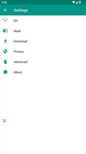 打開ehviewer綠色版,向右滑動進入設置頁面,然后點擊“setting”選項。