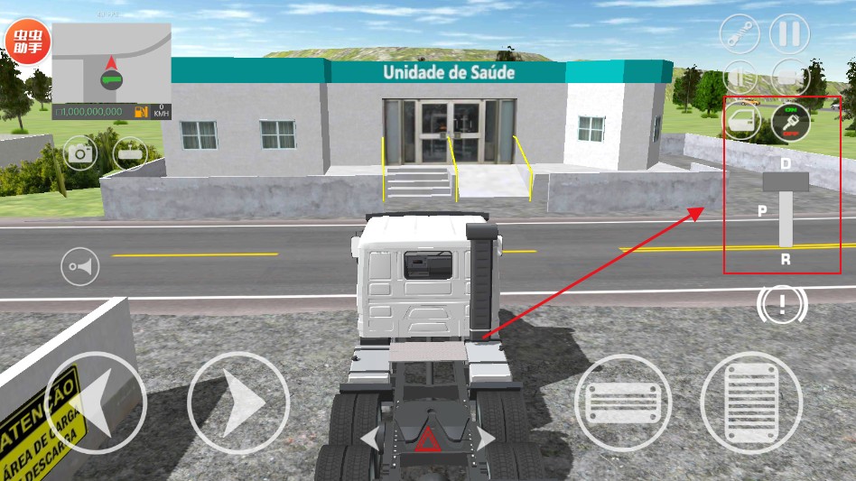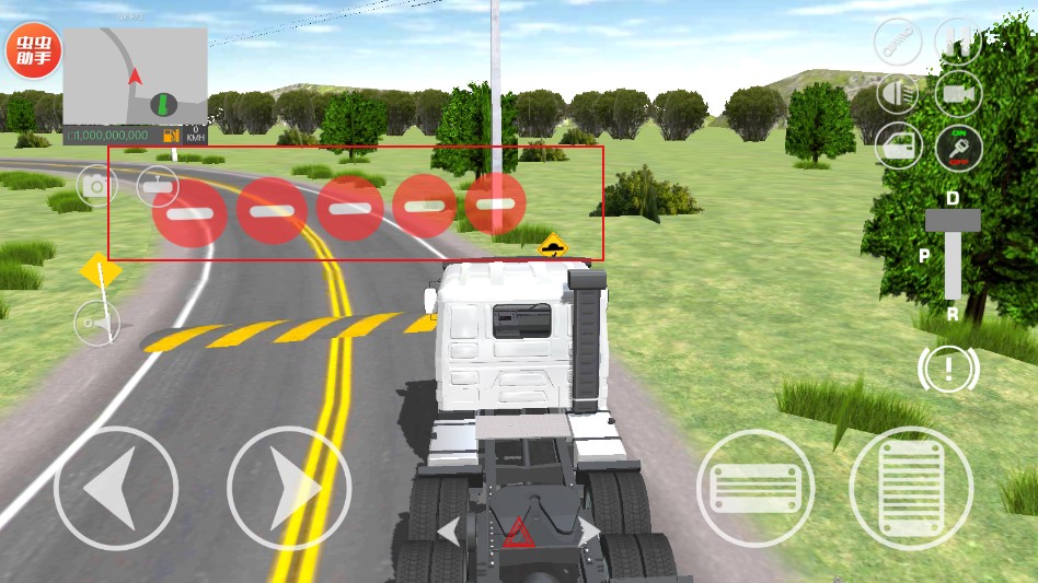 開始駕駛前需要先點火,屏幕右上角的鑰匙按鈕,點擊后顯示“on”即為點火成功,顯示“off”則是熄火狀態;車輛有前進檔、空擋和倒車檔三種檔位,其中“d”對應前進檔,“r”對應倒車檔,“p”對應空擋。