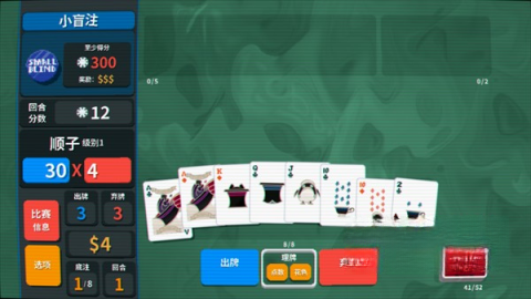 玩家開局擁有一副完整的52張撲克牌,每當出牌或棄牌后牌組會自動補充至滿額;由于操作次數存在限制,策略的制定與執行便顯得尤為關鍵。