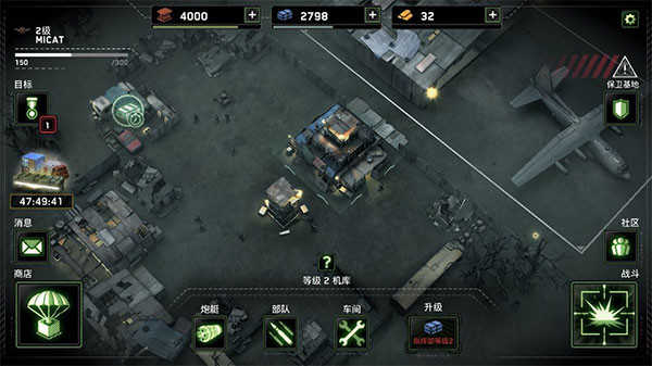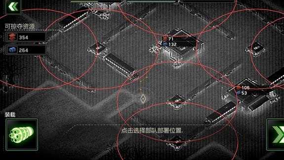 開始執行任務前,首先要確定「部隊部署」的具體位置——注意紅圈標注的高塔區域禁止部署。建議優先觀察「可掠奪資源」周邊的建筑布局,仔細計算每個障礙物與資源點之間的距離,同時明確本次任務的目標要求,盡量達成目標以獲取更豐厚的資源。其實前期任務難度都不大,完成后獲得的寶箱有機會開出5.56毫米機槍、MP5沖鋒槍、火炮等裝備,還能獲得等級經驗。另外,點擊「戰隊圖標」可以查看所有武器和設施,其中紅色標識的代表尚未解鎖獲取。
