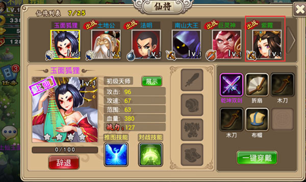 雖然大家都是喜歡紫霞仙子的~但是前期紫霞沒有資源培養的時候,不是很強勢,所以出戰方面不如選擇藍紫品質代替先,一開始上陣的仙將數在6個,可以選擇1炮、1步兵、2法師、2弓箭進行培養,剩下兩個可以隨意搭配培養,盡可能的是資源最優化,這樣有利于推圖。