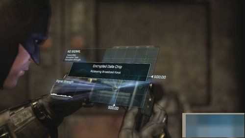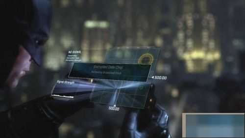 到達樓頂時自己的裝備已經被送到,換上蝙蝠俠的裝扮后會拿出儀器調整頻段,看到上面兩個綠點和一個黃色光圈后把坐標點移動到黃色坐標點然后按住A鍵入侵網絡。