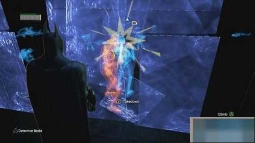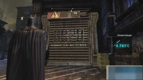 進入小丑辦公室后被兩人狠狠的擺了一道,蝙蝠俠還是太純潔了,最后被無情的扔出窗外。此時整個城市溫度驟減,開始尋找冰凍人的位置。根據右側溫度分析器上的指示向溫度低的地方尋找,位置在地圖右上方的建筑內。