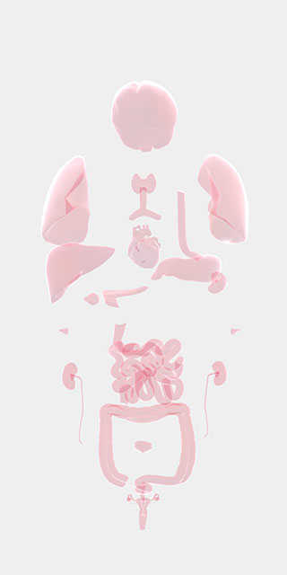 我們用手指向屏幕兩邊進行拖動,會將人體器官分開顯示,這樣會更有助于我們查找對應器官,點擊屏幕中央,器官又會聚攏在一起。