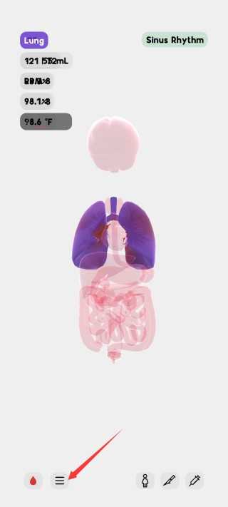 在生命模擬器中文版創造好人體后,點擊下方的菜單按鍵。