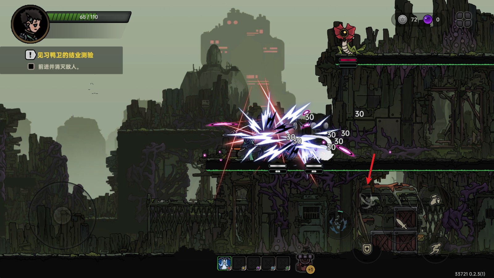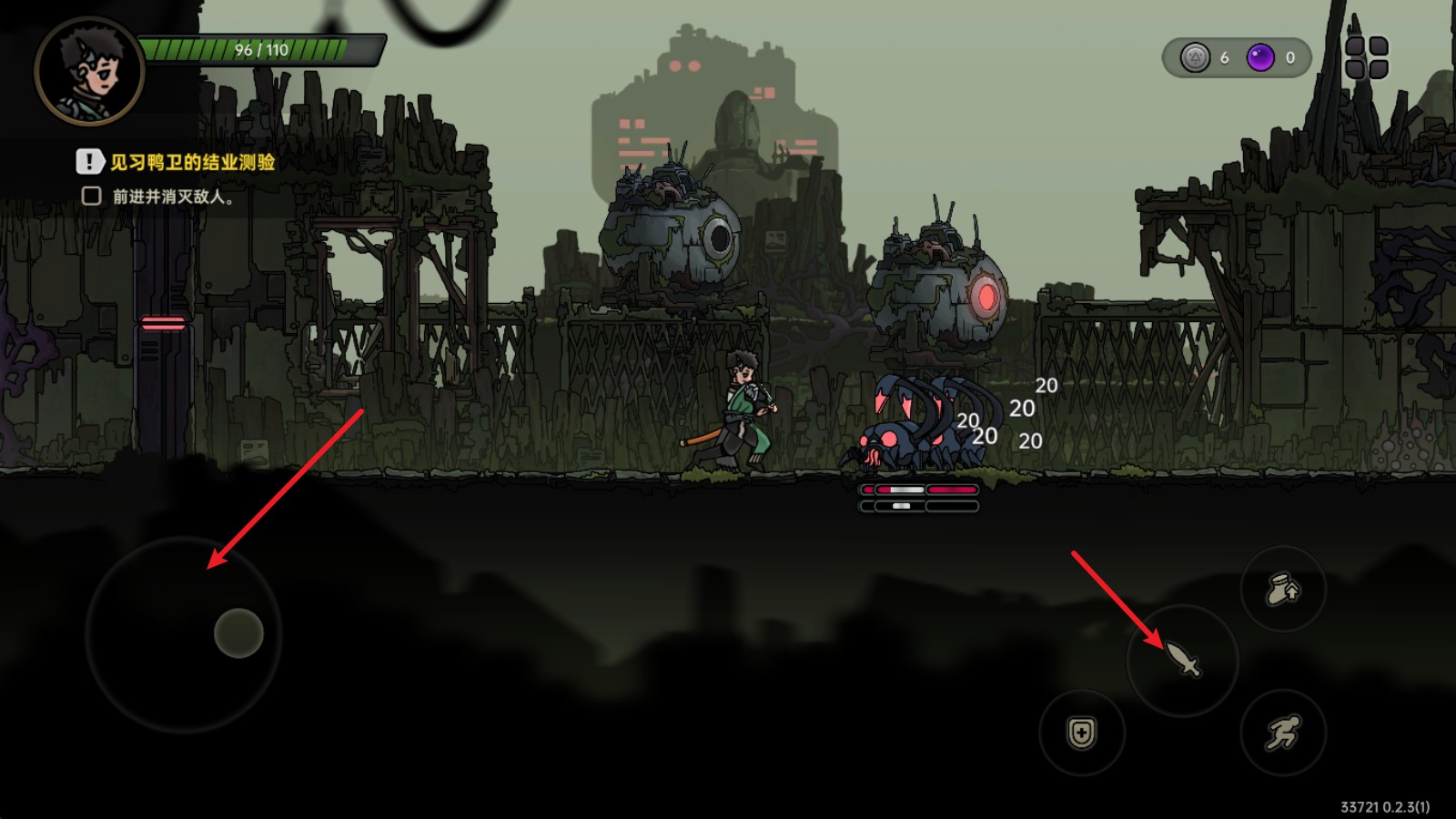 進入游戲后,通過左側搖桿控制人物移動,右側進行攻擊。