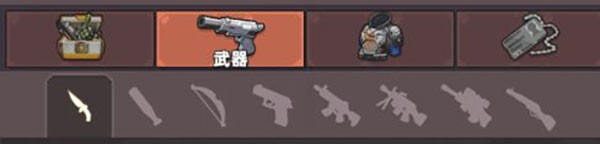 按照圖片順序,分別為:利刃, 鈍器, 弓弩, 輕武器, 步槍, 重武器, 狙擊槍,散彈槍。