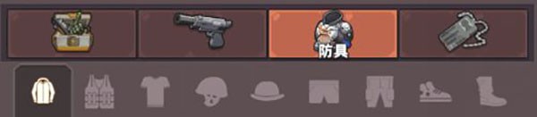 按照圖片順序,分別為:輕甲, 重甲, 布甲, 頭盔, 帽子, 輕褲, 重褲, 鞋子, 靴子。