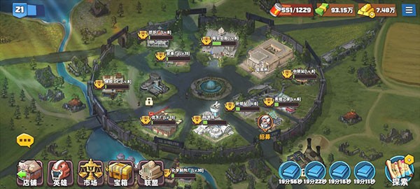 城市:能夠限制員工、英雄的等級上限,需要用錢來升級。