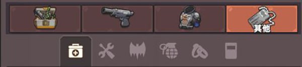 按照圖片順序,分別為:藥品, 工具, 暗器, 投擲武器, 首飾, 盾牌。