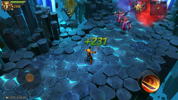 等待一會(huì)加載進(jìn)入游戲,游戲采用橫版操作,左手滑動(dòng)搖桿移動(dòng),右手點(diǎn)擊釋放技能;