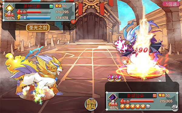 首先,除了初始寵物,玩家還有機會獲得屬性比較穩定的寵物,就是首充禮包贈送的光系四星寵物萊特比斯。充值任意金額就能獲得,只有圣獸才有的史詩級紫色品質及雙天賦。光系寵物本身具有先天優勢,基本屬于萬用型寵物,除了被稀有系龍系克制,與暗系寵物互相克制外,基本對其它系別都有屬性優勢。屬性克制在游戲中是非常重要的。接下來就是對獲得的萊特比斯的培養,可以讓你持續到游戲中后期都能比較給力。
