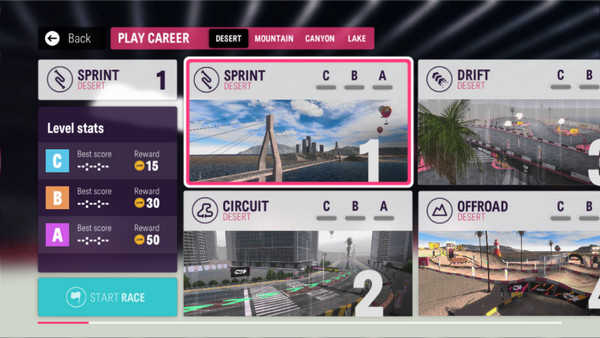 返回主界面點擊比賽選項,PLAY career可讓你挑選賽道開始挑戰。