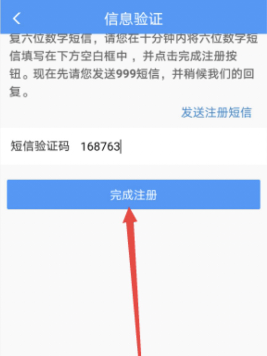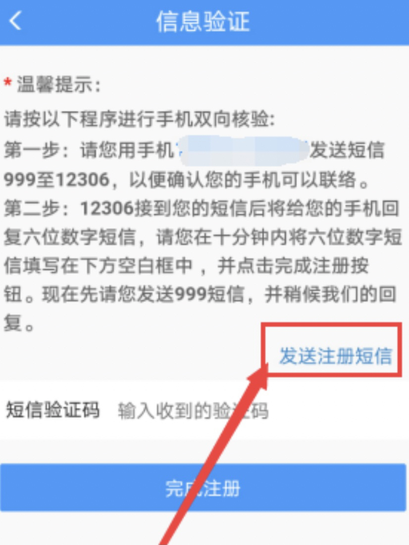 繼續(xù)完成注冊,點擊“發(fā)送注冊短信”。