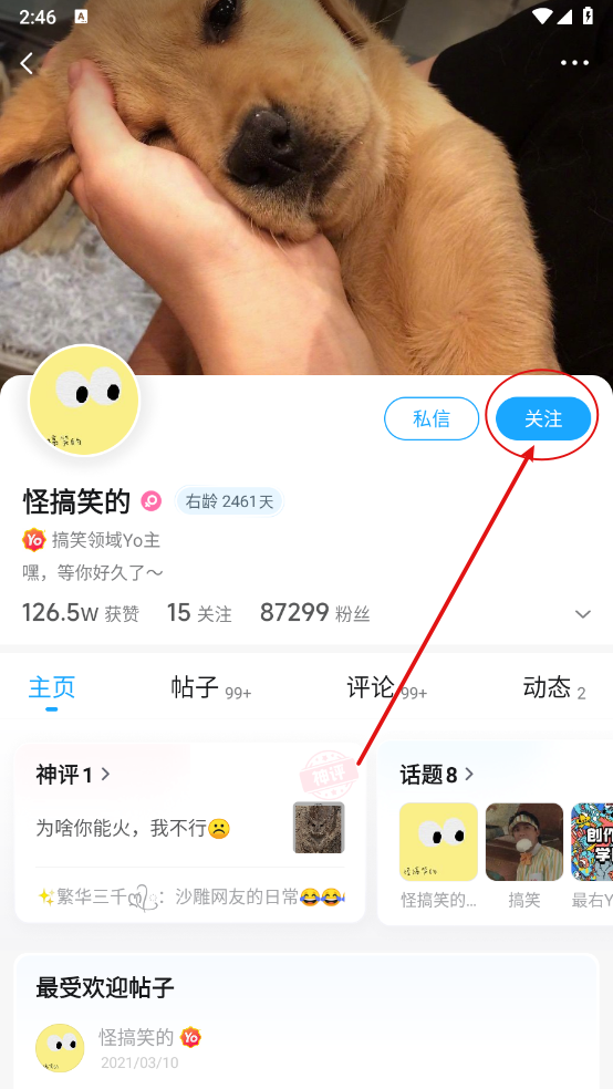 一鍵點擊進入主頁,點擊“關注”按鈕,待對方也回關后,雙方即可成為好友。