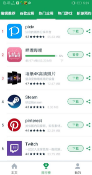運行結束后,點擊排行榜->熱門應用,找到排名第二的Bilibili。