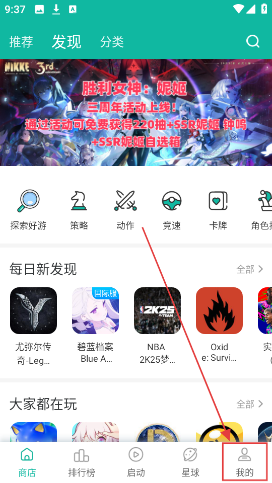 在商店頁面底部找到【我的】按鈕,點擊它就能進入個人頁面,查看各類個人相關功能了。