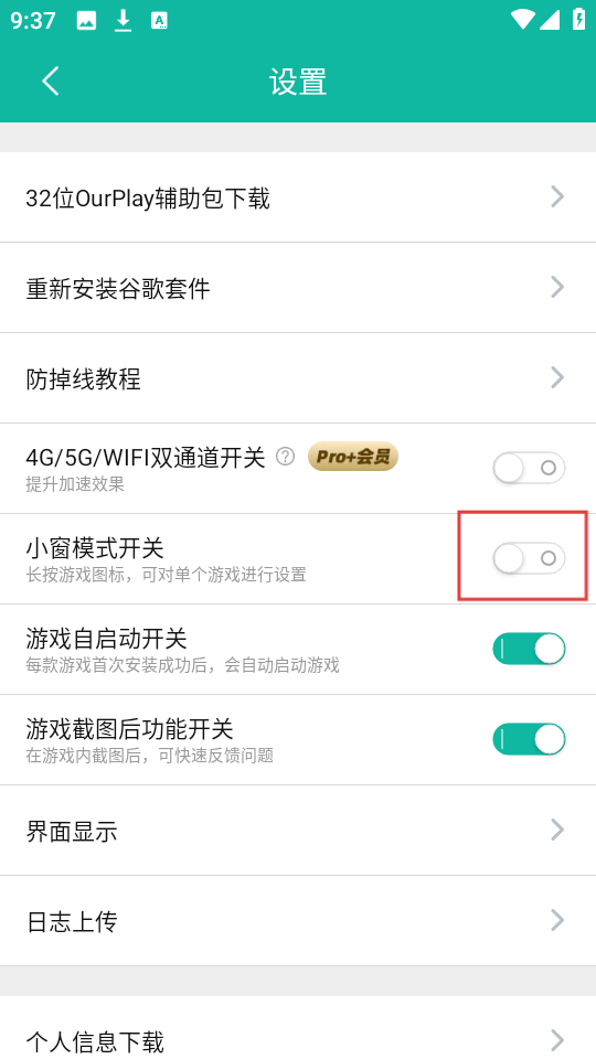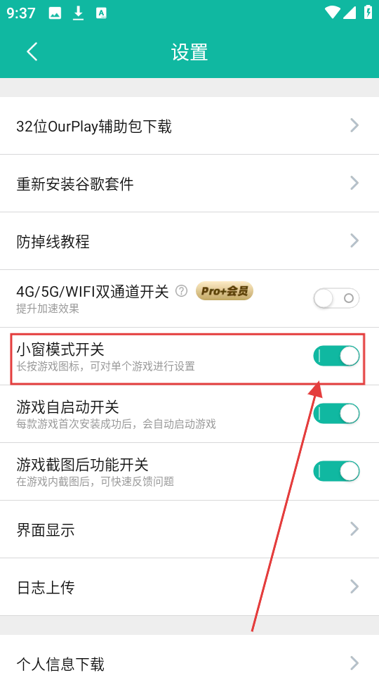 在設置頁面中,你能找到【小窗模式開關】,點擊這個開關就能開啟小窗模式了。