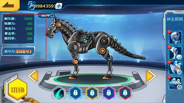 2、在機甲倉庫里可以查看機甲的所有屬性以及戰斗力。