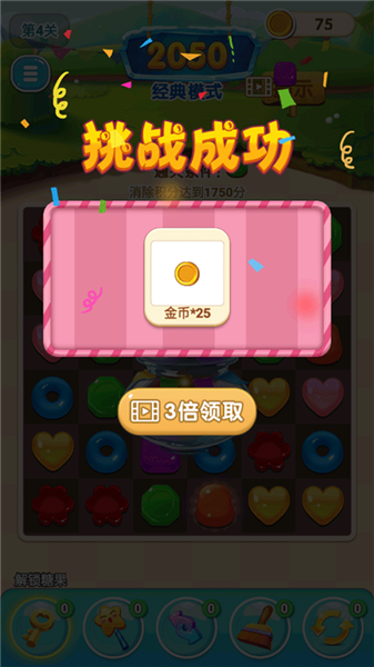 操作非常簡單,只需點擊畫面,把相同頭像的糖果移動到一起就能消除。